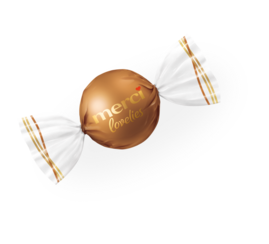 Mlečna čokolada s kremno lešnikovo sredico in hrustljavimi koščki.